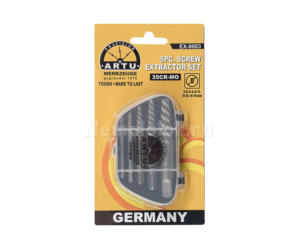 Германия, КитайНабор спиральных экстракторов для винтов ARTU, 5 шт. (EX-8003)