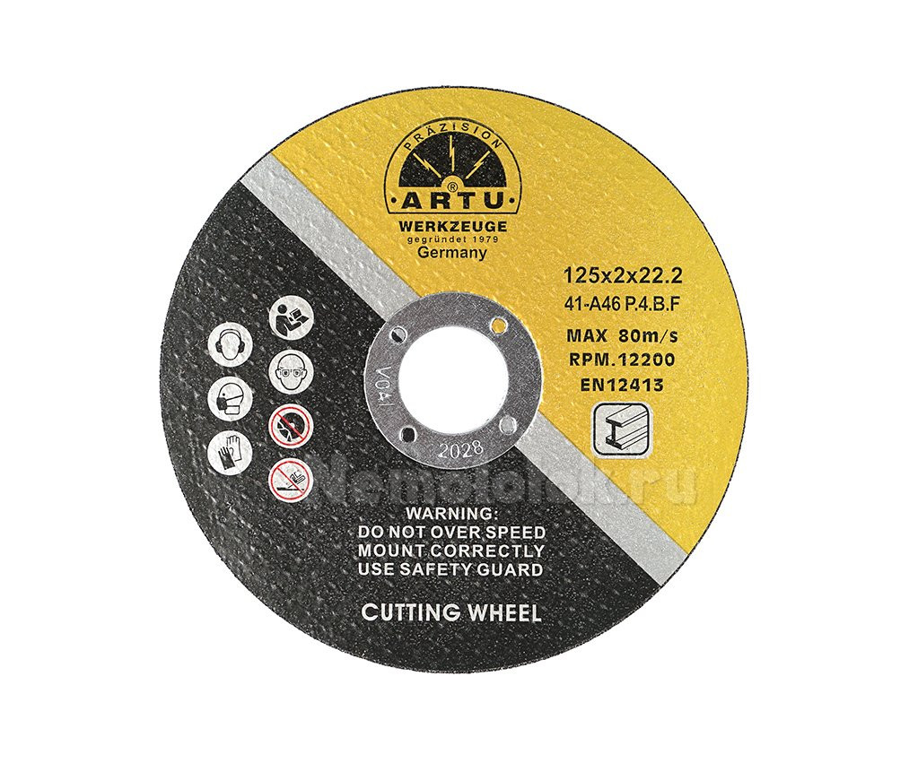 Германия, КитайОтрезной диск по металлу ARTU, 125×22,2×2,0 мм, 10 шт. (CUT-520/10)