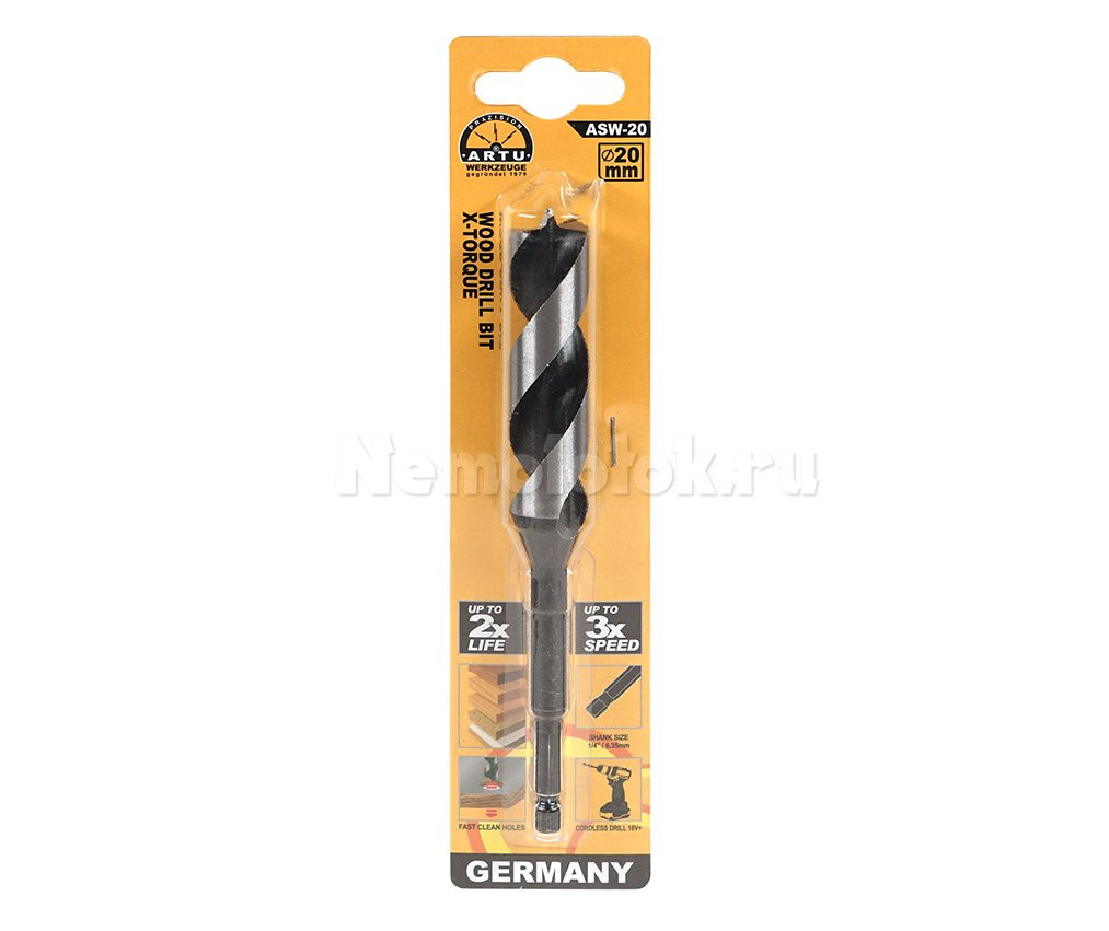 Германия, КитайСверло шнековое (Левиса) по дереву ARTU, 20×160 мм, против заклинивания (ASW-20)