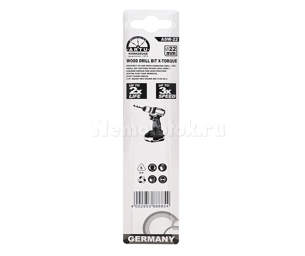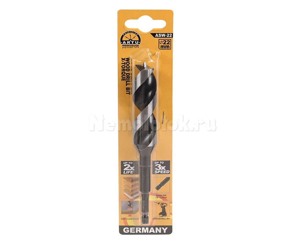 Германия, КитайСверло шнековое (Левиса) по дереву ARTU, 22×160 мм, против заклинивания (ASW-22)