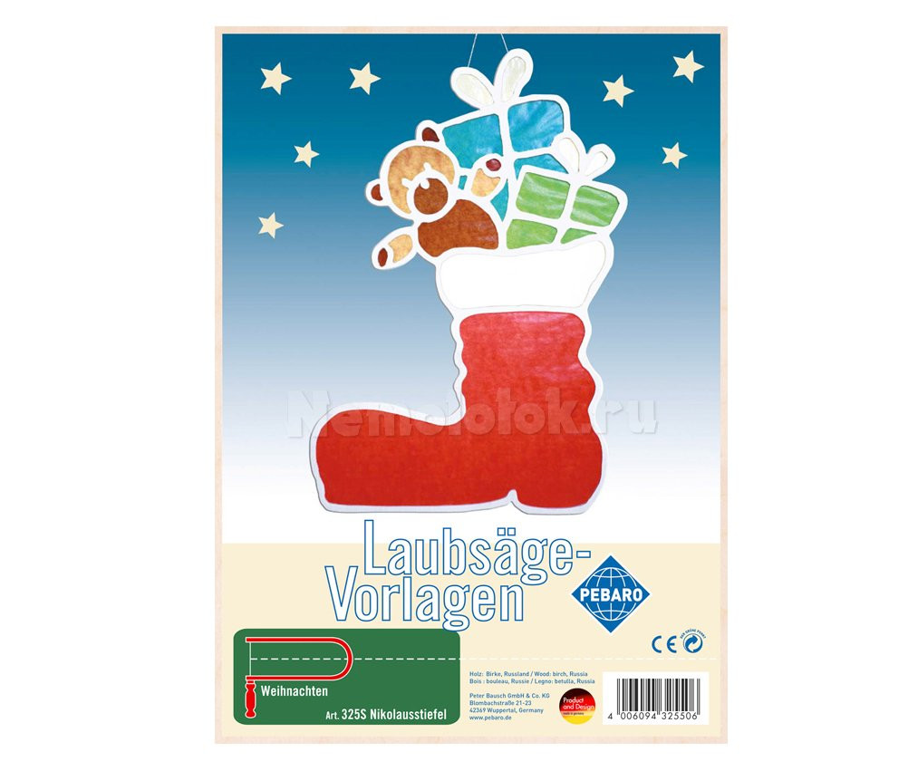 ГерманияЗаготовка из фанеры «Рождественский сапожок» для выпиливания лобзиком (325S)